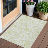 3' X 5' Sage Green And Ivory Paisley Washable Indoor Outdoor Area Rug