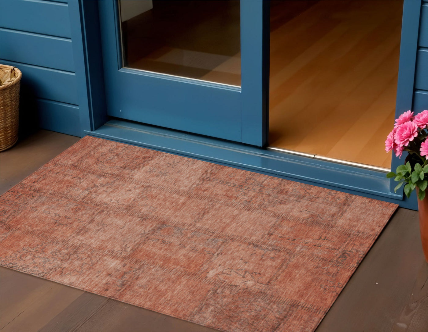 3' X 5' Salmon Copper And Gray Patchwork Washable Indoor Outdoor Area Rug