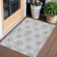 3' X 5' Silver Gray And Charcoal Medallion Washable Indoor Outdoor Area Rug