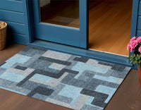 3' X 5' Sky Blue Denim Blue And Gray Geometric Washable Indoor Outdoor Area Rug