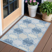 3' X 5' Sky Blue Gray And Ivory Trellis Washable Indoor Outdoor Area Rug