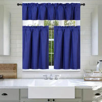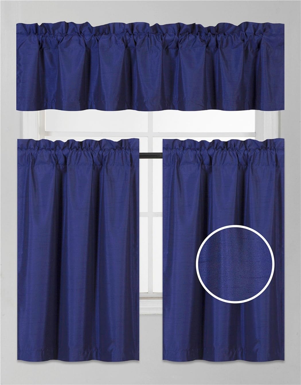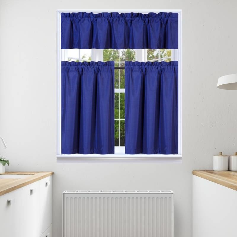 3Pc Set Solid Faux Silk Lined Blackout Rod Pocket Small Kitchen Window Curtain With Valance (K3) (Royal Blue)
