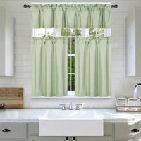 3Pc Set Solid Faux Silk Lined Blackout Rod Pocket Small Kitchen Window Curtain With Valance (K3) (Sage Green)