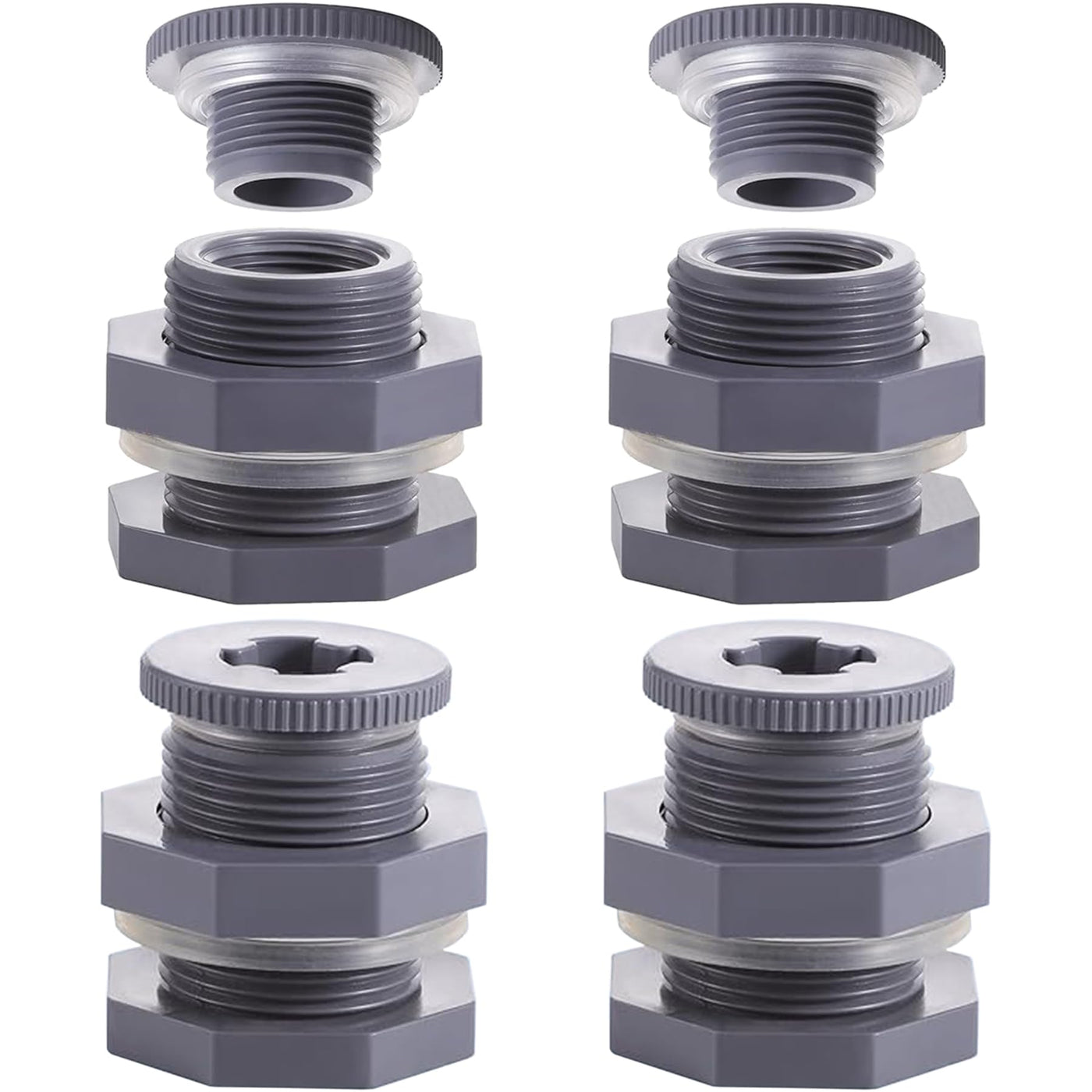 Bulkhead Fittings Are Suitable For Most Rain Barrels, Water Tanks, Ponds Or Aquariums. The Material Is Made Of High-Quality Pvc, Which Is Corrosion-Resistant And Easy To Install And Use. Accessory Kit: 3/4-Inch Bulkhead Adapters (2 Pcs) 3/4-Inch Plugs (2 Pcs) Leak-Proof Gaskets.