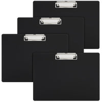 4 Pack Black Plastic Clipboards With Low Profile Clip, 12.4 X 8.9 Horizontal Lap Clip Boards, Landscape Layout, Letter Size For