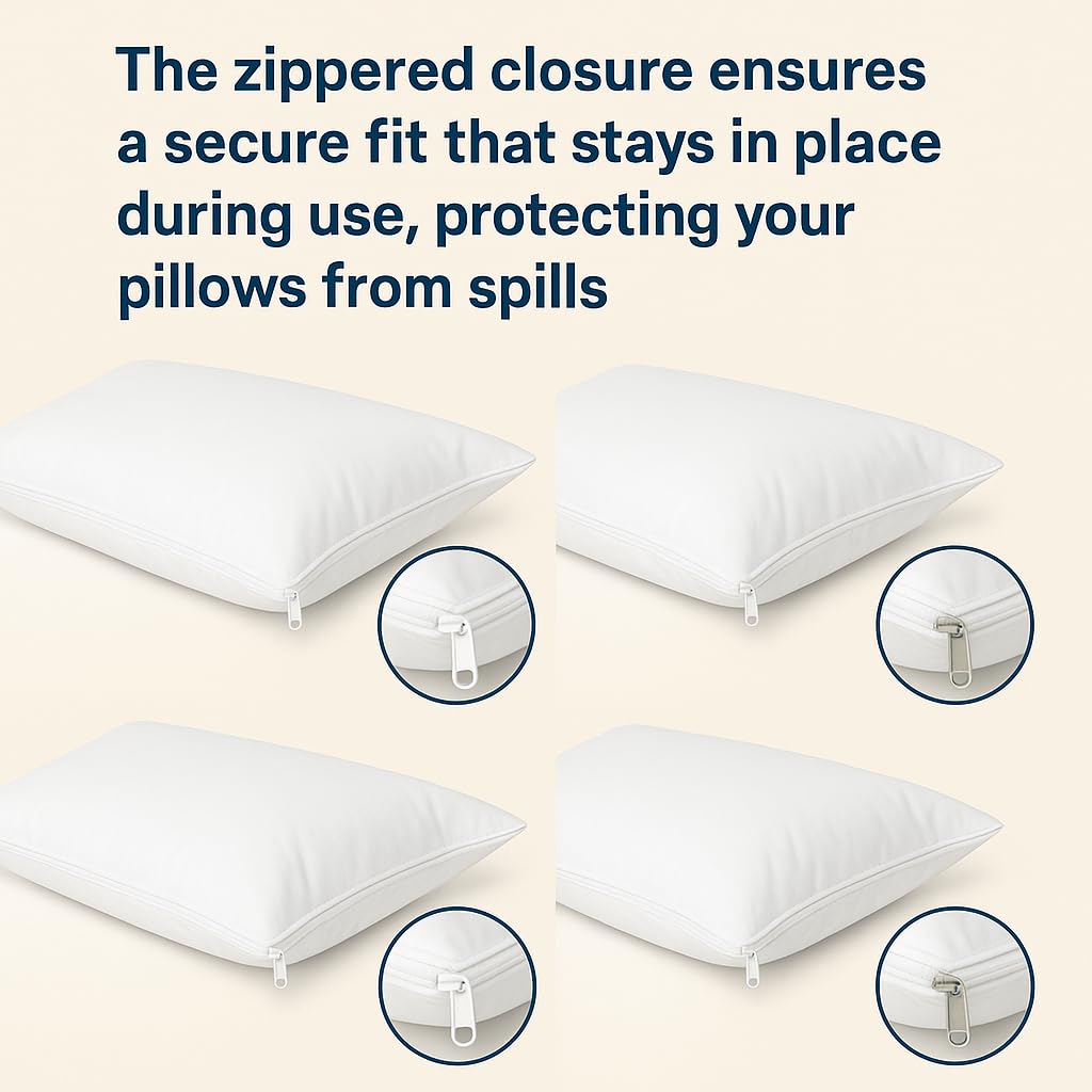 4 Pack Deluxe Zippered Vinyl Pillow Covers - Waterproof Protectors For Longer Lasting Pillows Standard Size 21X27 Ideal For Home