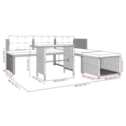 vidaXL 4 Piece Garden Lounge Set Poly Rattan Black - 44287, This 4-piece garden furniture set will be the eye-catcher in your garden, on your balcony or patio. It is a perfect combination of style and functionality. Thanks to the water-resistant PE rattan, the sofa set is easy to clean and durable. The powder-coated steel frame also makes this set of furniture strong and stable. It is also delivered with highly comfortable, thickly-padded cushions and pillows for the ultimate seating comfort. The low-maintenance polyester covers can be removed and washed. Delivery includes 1 table, 1 footstool, 1 two seater sofa, 1 sunlounger, 3 seat cushions and 3 back pillows. Note: We recommend covering the set during rain, snow and frost for its best service to last.