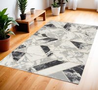 4' X 6' Ivory Black and Gray Geometric Non Skid Area Rug