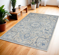 4' X 6' Ivory Blue and Gray Floral Medallion Non Skid Area Rug