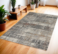 4' X 6' Ivory Gray and Golden Brown Abstract Area Rug