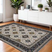 Add some artistry to your room with this 4-foot x 6-foot ivory medallion power loom area rug with fringe. This rectangle shaped rug features a medallion design in ivory to give it visual interest. A classic shape marries with good looking design for your space the coloring of this rug adds a delightfully neutral tone to your home and will easily match with most any decor. Ideal for spaces with kids and pets, this rug is stain resistant to help repel stains and spilled liquids. Tassel ends bring a timeless and fashionable look to your interior. Place this area rug against a hardwood or tile floor and it will enliven your living space with style and sophistication. 45.67-inch H x 66.14-inch W x 0.47-inch D
