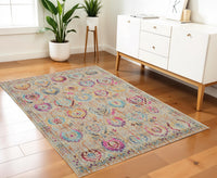 4' X 6' Ivory Pink And Orange Floral Distressed Area Rug