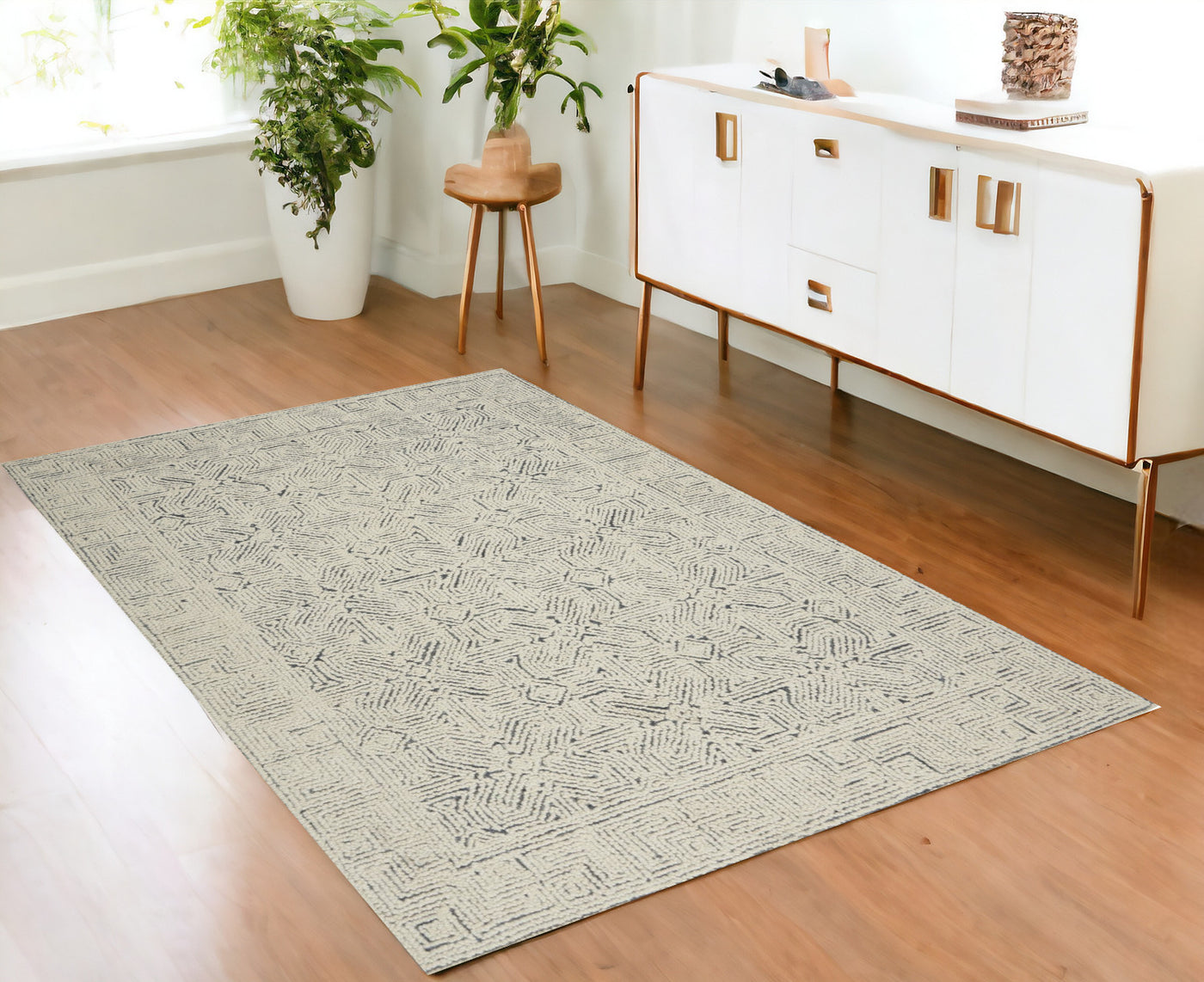 4' X 6' Navy Blue and Ivory Wool Abstract Area Rug