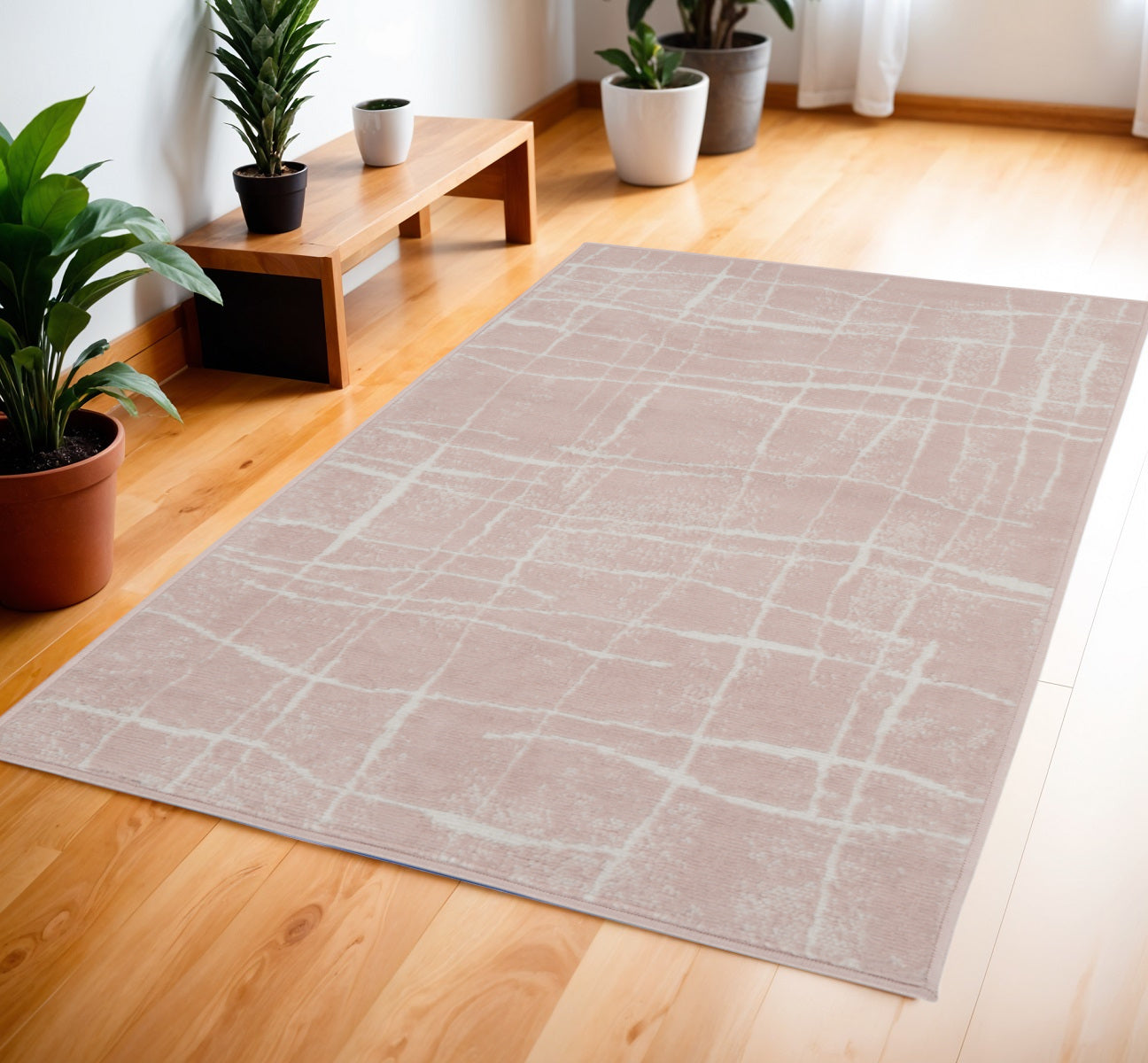 This 4-foot x 6-foot pink and ivory abstract geometric area rug, is a great way to add warmth to a room. Ideal for spaces with kids and pets, this rug is stain resistant to help repel dirt and spilled liquids. Built to last, this rug crafted from polypropylene fibers is known for its durability and long lasting appeal. Rugs are a great way to showcase your style, hide imperfections, warm your home and reduce noise. This smaller sized, modern styled rug is just what you need for your walkway, bedside, in front of door, cabinet, refrigerator, or chair. 48-inch h x 72-inch w x 0.39-inch d.
