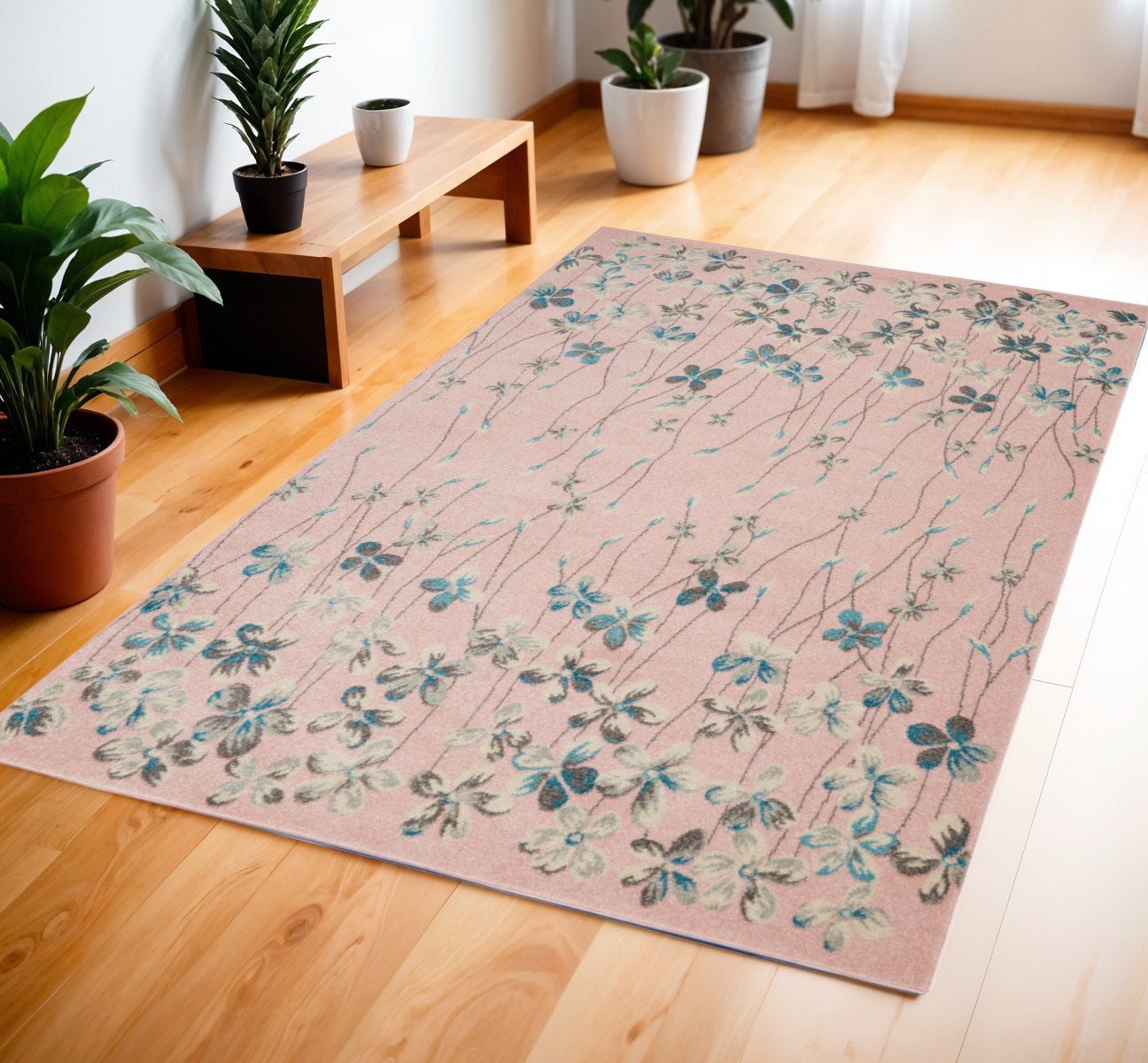 Add great coloration and comfortable texture to your space with this 4-foot x 6-foot pink gray and blue botanical leaves area rug. Ideal for spaces with kids and pets, this rug is stain resistant to help repel dirt and spilled liquids. Built to last, this rug crafted from polypropylene fibers is known for its durability and long lasting appeal. Rugs are a great way to showcase your style, hide imperfections, warm your home and reduce noise. This smaller sized, contemporary styled rug is just what you need for your walkway, bedside, in front of door, cabinet, refrigerator, or chair. 48-inch h x 72-inch w x 0.5-inch d.