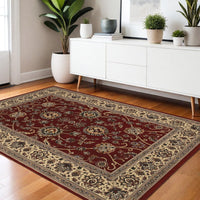 Set an inviting tone in your space with this 4-foot x 6-foot red oriental power loom area rug. This rectangle shaped rug features a oriental design in red to give it visual interest. A classic shape marries with good looking design for your space ideal for spaces with kids and pets, this rug is stain resistant to help repel stains and spilled liquids. Area rugs help to give warmth and sense of home to your space. 47.24-inch H x 70.87-inch W x 0.43-inch D