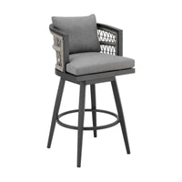 The perfect way to add some extra seating to your outdoor oasis, this 40-inch gray metal swivel outdoor bar height chair with footrest will elevate the look and vibe of your space. Let the captivating gray color make a lasting impression and showcase your unique personality. With detachable cushions, you have the convenience of being able to easily replace or clean specific cushions in case of spills, stains, or wear and tear. The convenience of these zipper removable cushion covers makes it easier to keep your outdoor seating looking its best. Complete with stylish gray colored cushions covered with long lasting and durable acrylic, this chair will add a clean and modern touch to your space. The round shape of the seat combines with a full back to give this chair a comfortable and fashionable look. Designed with armrests and footrests for your comfort and convenience from top to bottom. For outdoor gatherings on the deck, yard, patio or poolside, this bar stool is a comfy and trendy option. 40-inch H x 21-inch W x 23-inch D