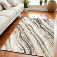 5' X 7' Beige Black and Gray Abstract Non Skid Area Rug