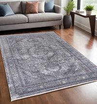 5' X 7' Gray and Silver Oriental Power Loom Worn Faded Area Rug