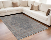 5' X 7' Gray Blue and Red Oriental Power Loom Worn Faded Area Rug With Fringe
