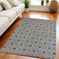 Add some artistry to your room with this 5-foot x 7-foot gray geometric area rug. This rectangle shaped rug features a geometric design that will add a functional and decorative accent to your space. This larger sized rug is ideal to create a focal point or statement piece in your room. 63-inch h x 84-inch w x 0.25-inch d