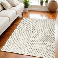 Add some artistry to your room with this 5-foot x 7-foot ivory and black abstract area rug. Ideal for spaces with kids and pets, this rug is stain resistant to help repel dirt and spilled liquids. Built to last, this rug crafted from polyester fibers is known for its durability and long lasting appeal. Rugs are a great way to showcase your style, hide imperfections, warm your home and reduce noise. This larger sized, modern styled rug is ready to create a focal point or statement piece in your room. 63-inch h x 84-inch w x 0.63-inch d