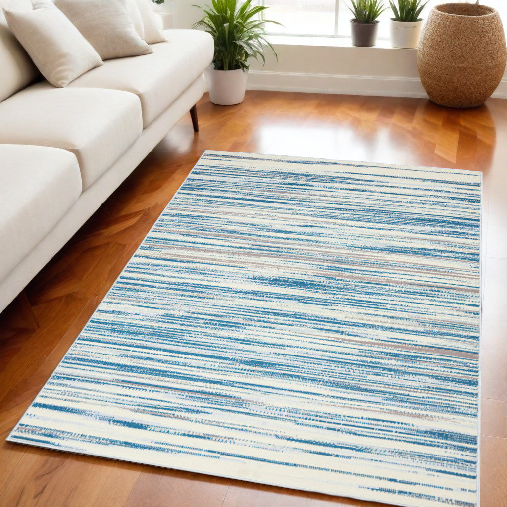 5' X 7' Ivory Blue and Gray Abstract Non Skid Area Rug