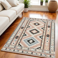 5' X 7' Ivory Pink And Black Geometric Flatweave Area Rug