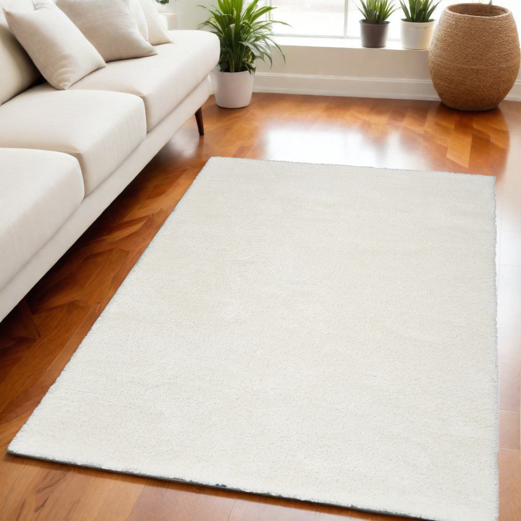 Add great coloration and comfortable texture to your space with this 5-foot x 7-foot ivory shag power loom area rug. This rectangle shaped rug flaunts a ivory color that will be a great way to accent your space. Solid colors are versatile and will blend with any existing decor style. The retro shag construction of this luxurious rug will provide a soft and comfortable barrier to color tile and hardwood floors. Area rugs help to give warmth and sense of home to your space. 63-inch H x 87-inch W x 1-inch D