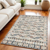 5' X 7' Ivory Tan And Black Geometric Flatweave Area Rug