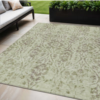 5' X 8' Artichoke Green And Brown Floral Washable Indoor Outdoor Area Rug