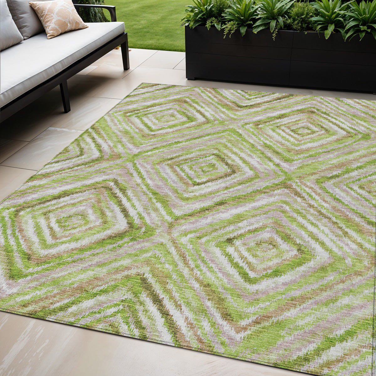 5' X 8' Artichoke Green And Brown Geometric Washable Indoor Outdoor Area Rug
