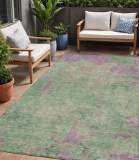 5' X 8' Artichoke Green And Eggplant Abstract Washable Indoor Outdoor Area Rug