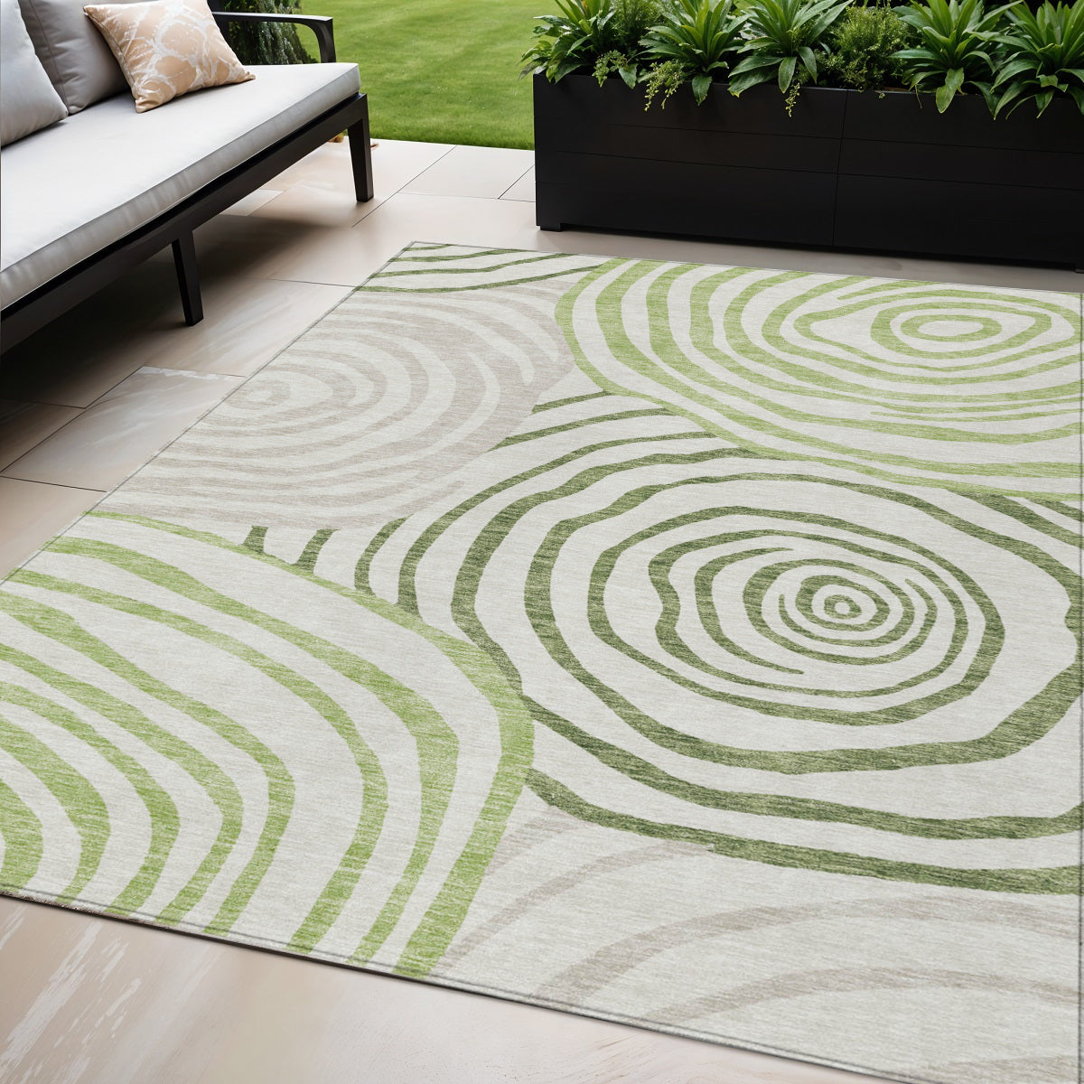 5' X 8' Artichoke Green And Fern Green Abstract Washable Indoor Outdoor Area Rug
