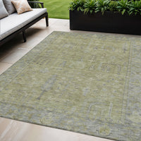 5' X 8' Artichoke Green And Gray Oriental Washable Indoor Outdoor Area Rug