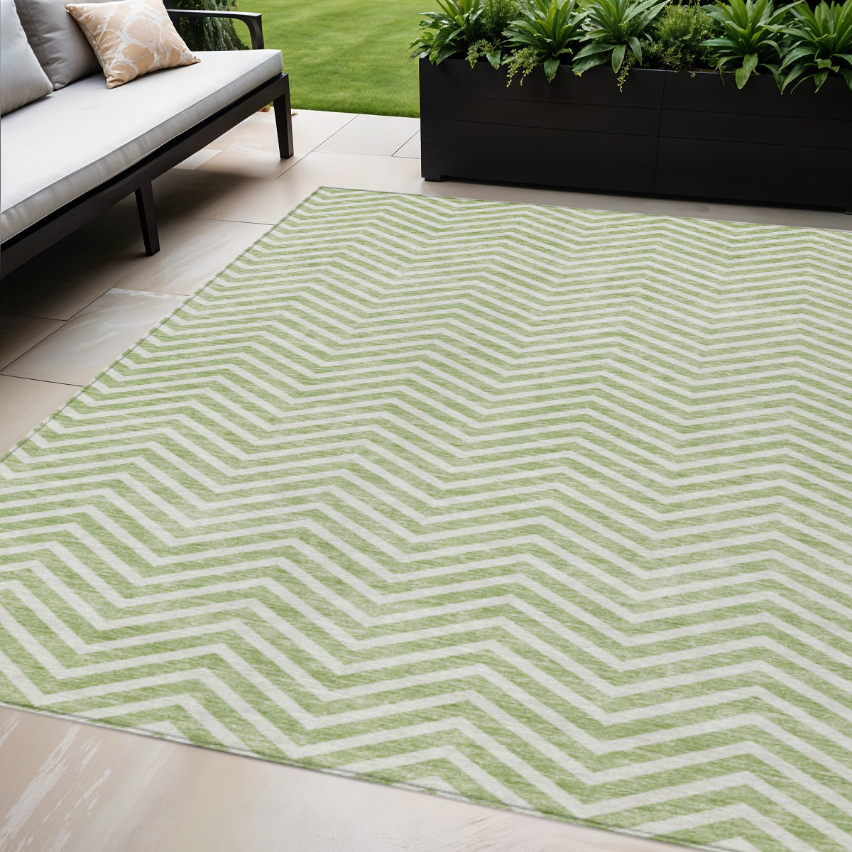 5' X 8' Artichoke Green And Ivory Chevron Washable Indoor Outdoor Area Rug