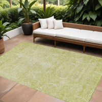 5' X 8' Artichoke Green And Ivory Damask Washable Indoor Outdoor Area Rug