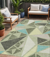 5' X 8' Artichoke Green Ivory And Aqua Geometric Washable Indoor Outdoor Area Rug