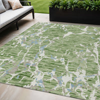 5' X 8' Artichoke Green Ivory And Beige Striped Washable Indoor Outdoor Area Rug
