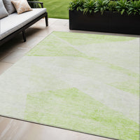 5' X 8' Artichoke Green Lime Green And Ivory Abstract Washable Indoor Outdoor Area Rug