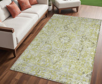 5' X 8' Artichoke Green Oriental Washable Non Skid Indoor Outdoor Area Rug