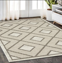 Add great coloration and comfortable texture to your space with this 5-foot x 8-foot beige geometric power loom area rug. This rectangle shaped rug features a geometric design in beige to give it visual interest. A classic shape marries with good looking design for your space the coloring of this rug adds a delightfully neutral tone to your home and will easily match with most any decor. Ideal for spaces with kids and pets, this rug is stain resistant to help repel stains and spilled liquids. Place this area rug against a hardwood or tile floor and it will enliven your living space with style and sophistication. 62.99-inch H x 90.55-inch W x 0.32-inch D