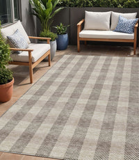 5' X 8' Beige And Brown Plaid Washable Indoor Outdoor Area Rug