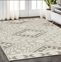 Add great coloration and comfortable texture to your space with this 5-foot x 8-foot beige tribal power loom area rug. This rectangle shaped rug features a tribal design in beige to give it visual interest. A classic shape marries with good looking design for your space the coloring of this rug adds a delightfully neutral tone to your home and will easily match with most any decor. Ideal for spaces with kids and pets, this rug is stain resistant to help repel stains and spilled liquids. Area rugs help to give warmth and sense of home to your space. 62.99-inch H x 90.55-inch W x 0.32-inch D
