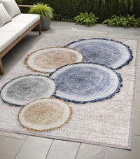 5' X 8' Beige Blue And Gold Faux Bois Washable Non Skid Indoor Outdoor Area Rug