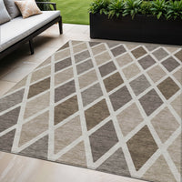 5' X 8' Beige Gray And Brown Geometric Washable Indoor Outdoor Area Rug