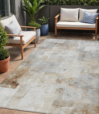 5' X 8' Beige Gray And Khaki Abstract Washable Indoor Outdoor Area Rug