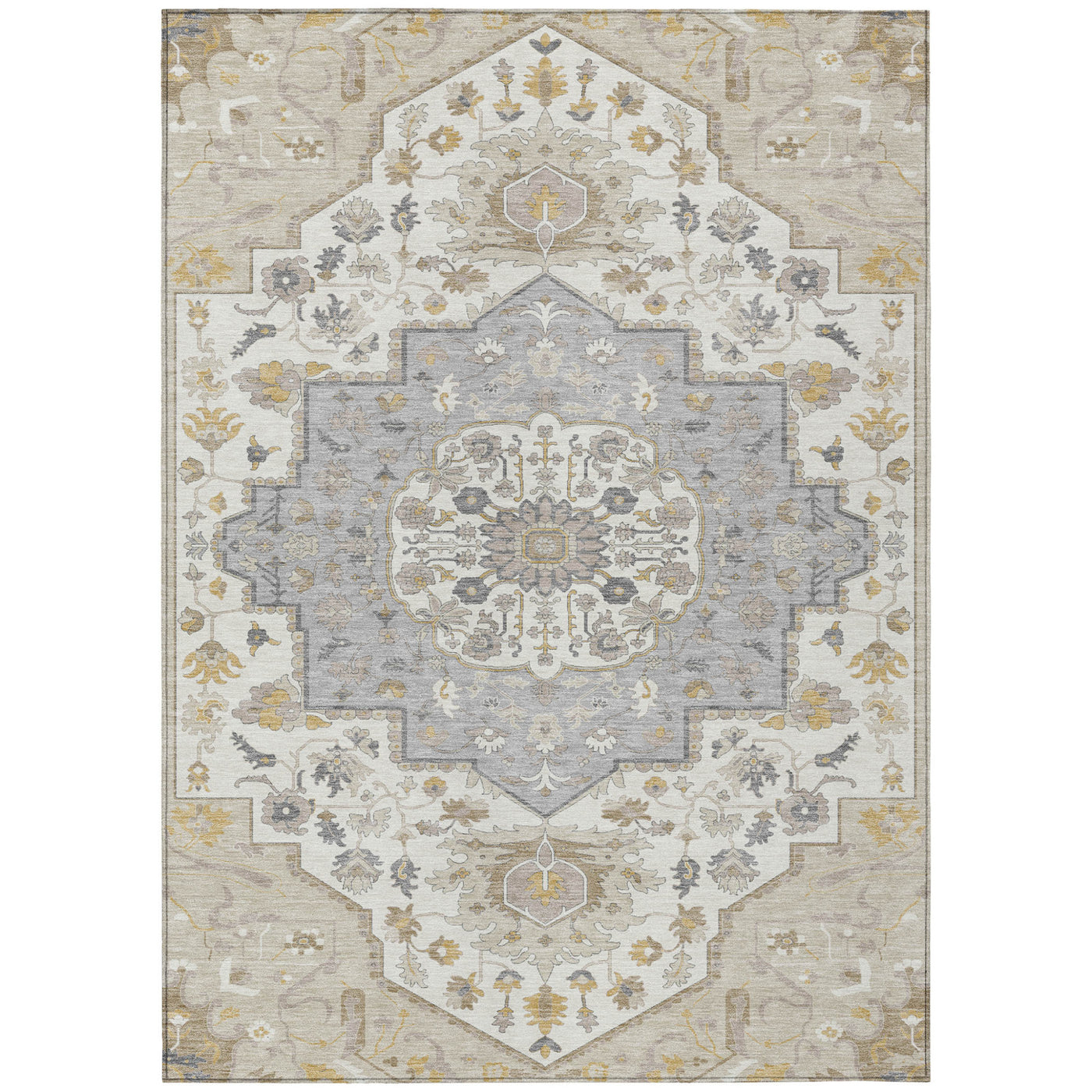 5' X 8' Beige Ivory And Gray Oriental Washable Indoor Outdoor Area Rug