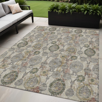 5' X 8' Beige Taupe And Green Damask Washable Indoor Outdoor Area Rug