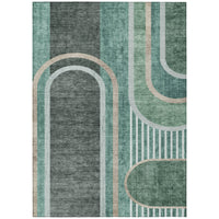 5' X 8' Black And Green Abstract Washable Non Skid Indoor Outdoor Area Rug